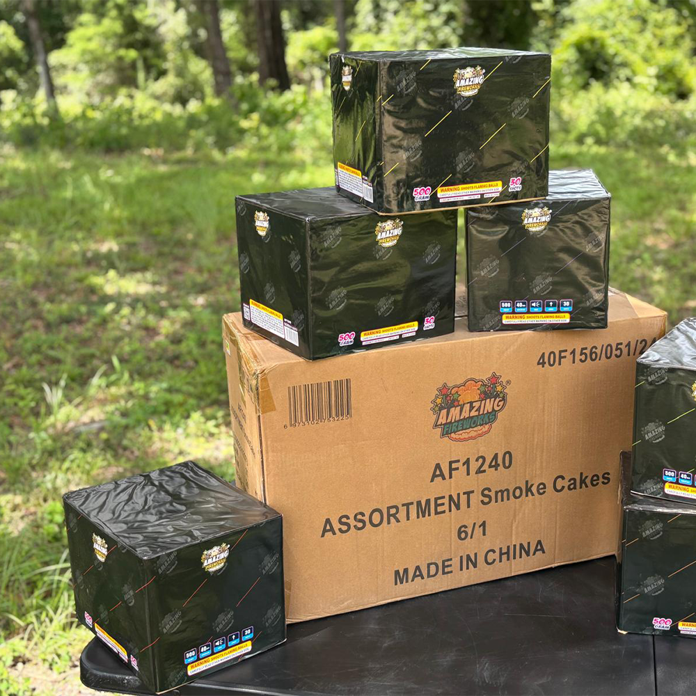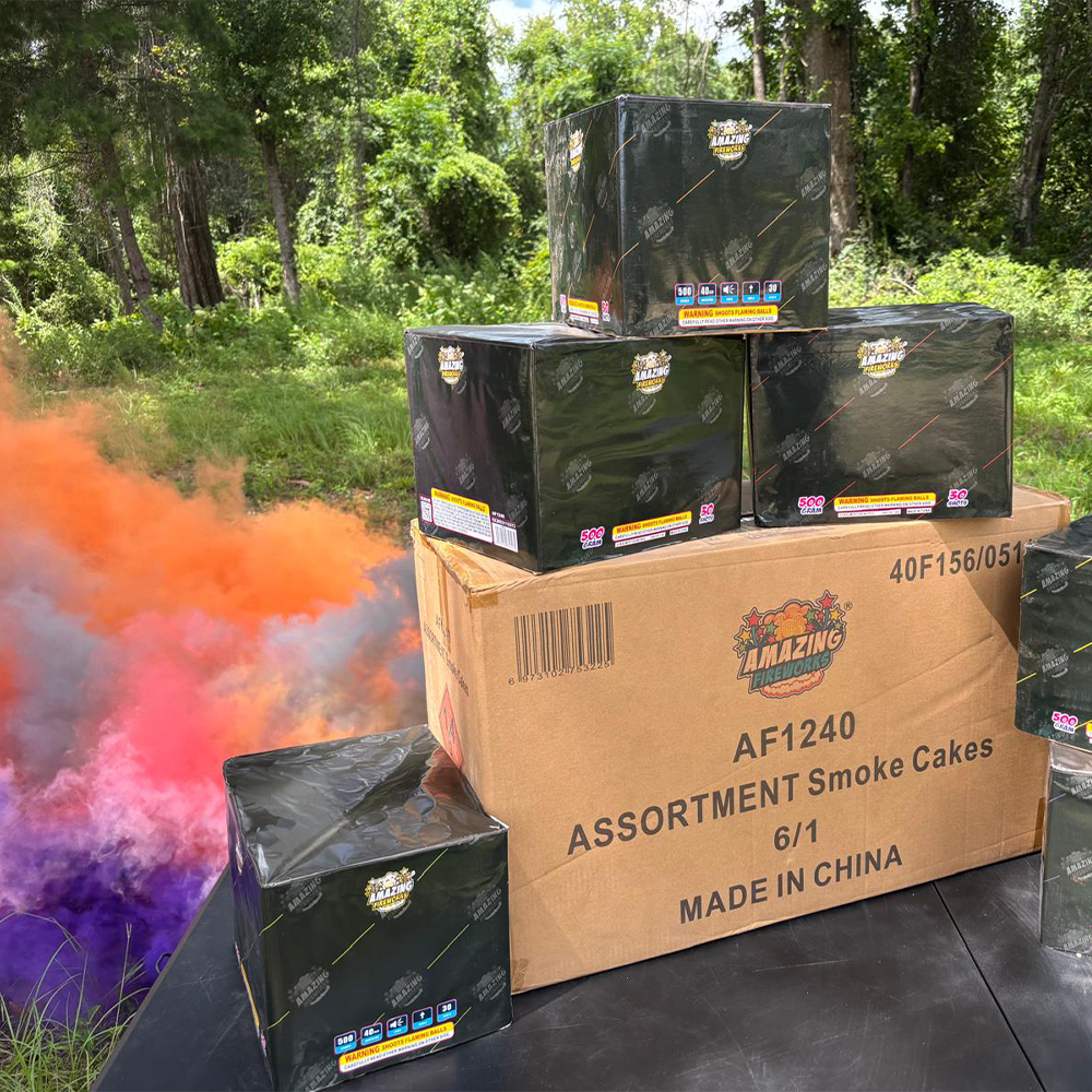 500 gram Smoke Cakes! Each Case of 6 Comes With 1 Each: Green, Red, Orange, Yellow, Purple, and Black. Click color name to watch videos of each color!